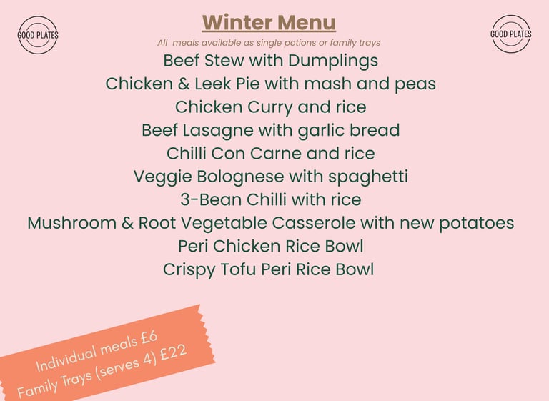 Homemade meals, cooked in small batches, frozen for quality, and delivered across Thanet every Friday between 3–6pm